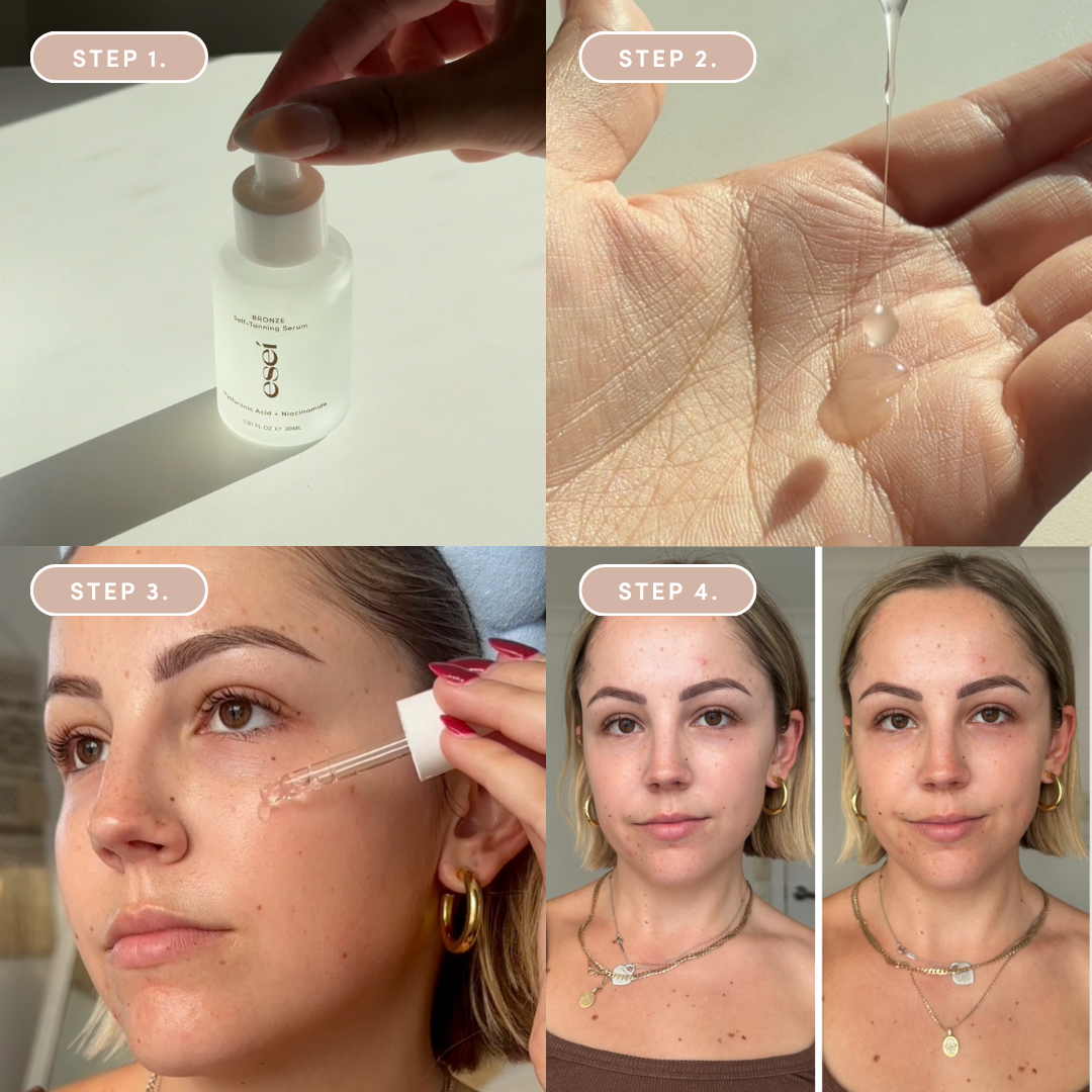 Apply 4-6 drops of Bronze to clean, dry skin. Gently massage over face, neck and décolletage in circular motions. Allow to absorb fully. Wash hands immediately